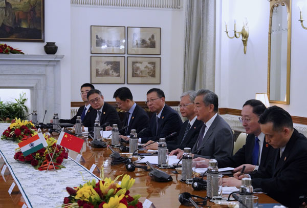 王毅强调,中方愿秉持亲诚惠容、命运与共的理念方针,同包括印度在内的周边国家一道,共同建设和平、安宁、繁荣、美丽、友好“五大家园”。中印双方应坚定信心,相向而行,排除干扰,拓展合作,巩固中印关系改善势头,让两大东方文明的振兴进程相互促进、相互成就,为亚洲乃至世界提供最需要的确定性和稳定性。