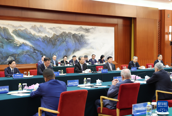 2025年9月10日下午,全国人大常委会委员长赵乐际在北京集体会见出席2025年国际议员友好交流论坛的各国议员。
