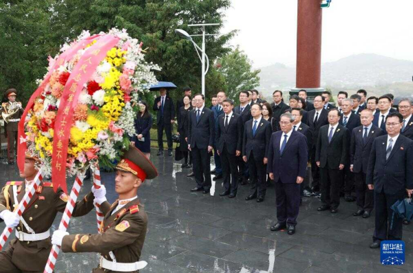 当地时间2025年10月10日下午,在中国人民志愿军抗美援朝出国作战75周年之际,中共中央政治局常委、国务院总理李强专程赴安州中国人民志愿军烈士陵园凭吊烈士。