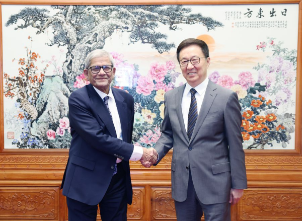 2026年4月21日,国家副主席韩正在京会见由党的总书记,内阁地方政府、农村发展和合作社部长阿拉姆吉尔率领的孟加拉国民族主义党高级干部考察团。