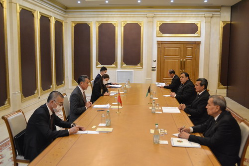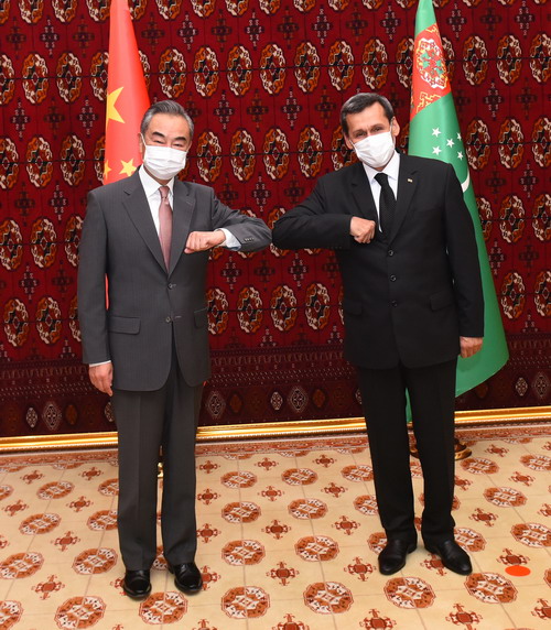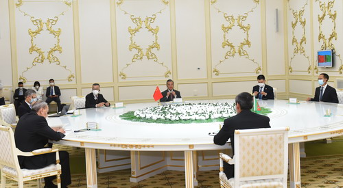 当地时间2021年7月12日,对土库曼斯坦进行正式访问的国务委员兼外长王毅在阿什哈巴德同土副总理兼外长梅列多夫举行会谈。