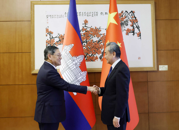 王毅表示,今年是中柬建交65周年和“中柬友好年”,习近平主席两次会见西哈莫尼国王和洪玛奈首相,并同洪森亲王保持战略沟通,充分体现了中柬关系的特殊性和高水平。两国率先签署新版构建中柬命运共同体行动计划,为推动构建人类命运共同体发挥了示范作用。祝贺柬埔寨独立70周年,很高兴看到在洪玛奈首相带领下,柬埔寨新一届政府施政百日成绩亮眼。中国永远是柬埔寨可信赖和可依靠的朋友,将一如既往支持柬埔寨走符合本国国情的发展道路,支持柬方捍卫国家主权独立和民族尊严,支持柬新一届政府维护稳定、发展经济、改善民生,愿为此提供力所能及的帮助。