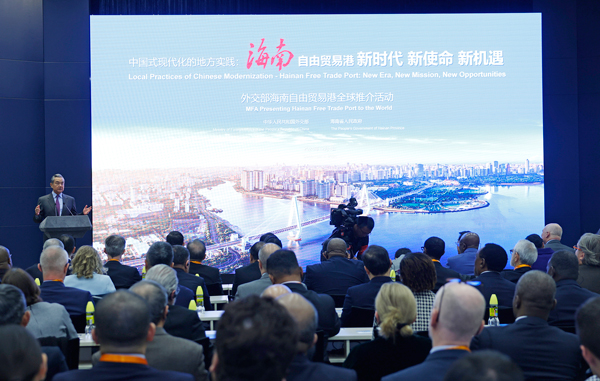 2024年12月4日,以“中国式现代化的地方实践:海南自由贸易港 新时代 新使命 新机遇”为主题的外交部海南自贸港全球推介活动在外交部蓝厅举行,中共中央政治局委员、外交部长王毅出席并致辞,海南省委书记冯飞、省长刘小明分别致辞和推介。外交部副部长马朝旭、部长助理刘彬,160多个国家的驻华使节及官员、国际组织驻华代表、中央部委和地方代表、企业和国际商协会代表、中外媒体代表等500余人出席。