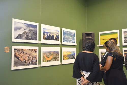 现场来宾们认真欣赏了展出的摄影作品,对中国丰富多彩的景观和文化表示赞叹。