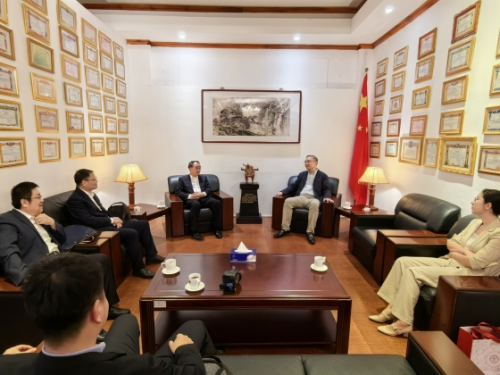 2023年12月15日,驻琅勃拉邦总领事张社平会见率团访问老挝的中国人民大学党委副书记吴付来。