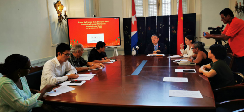 2023年12月14日,驻古巴大使马辉举行巴以问题媒体吹风会,阐明中方立场,介绍中国所做工作。《格拉玛报》、拉美社、《商业周刊》等古巴媒体参加。
