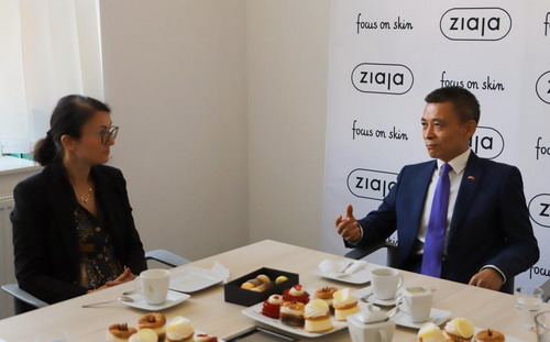 齐叶雅赞叹中国的发展成就,希望进一步开拓中国市场,促进中波经济往来与务实合作。