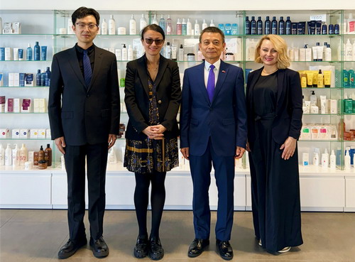 2024年3月26日,驻革但斯克总领事樊晓东会见波兰化妆品公司齐叶雅(ZIAJA)出口部经理莉迪亚·齐叶雅。