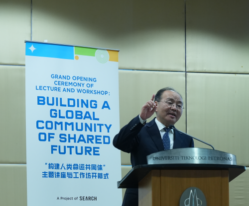 2025年6月30日,“构建人类命运共同体”主题讲座与工作坊开幕式在马来西亚国油科技大学举办,驻马来西亚大使欧阳玉靖和马来西亚科学、技术和创新部长郑立慷出席并致辞,国油科技大学校长菲鲁兹及该校师生近300人参加。