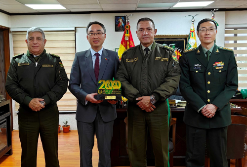 2025年9月5日,驻玻利维亚大使王亮会见玻国家警察局总司令鲁索少将。双方同意保持密切沟通协调,促进两国执法安全领域交流合作,并更好保障侨界、中资企业安全利益与合法权益。