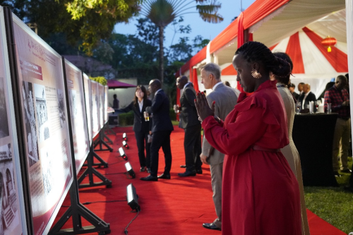 2025年9月9日,驻布隆迪大使赵江平出席使馆举办的庆祝中华人民共和国成立76周年招待会暨抗战胜利80周年主题图片展。布第一夫人、执政党总书记、通信部长、前参议院第一副议长等各界友人及华侨华人等200余人出席。