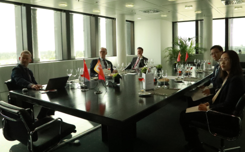 2025年9月22日,驻杜塞尔多夫总领事余勇走访杜塞尔多夫展览集团,会见总裁迪沃夫。