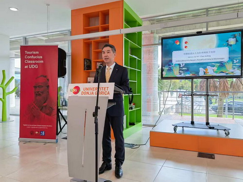 2025年10月6日,驻黑山大使陈绪峰应邀出席下戈里察大学旅游孔子课堂主办的“情寄中秋 共赏团圆”中国文化体验活动。下戈里察大学校长武科蒂奇、中国学院长奥兰迪奇、旅游孔子课堂中方院长付丽丽等师生百余人出席。