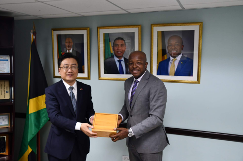 2025年10月9日,驻牙买加大使王锦峰拜会牙劳工和社会保障部长查尔斯,该部国务部长威廉姆斯、常秘詹宁斯等在座。