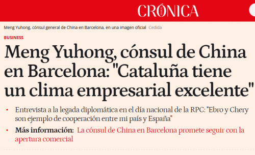 2025年10月1日,西班牙加泰罗尼亚自治区媒体《环球报道》刊登对驻巴塞罗那总领事孟宇宏专访。孟总领事重点介绍中国与西班牙关系,中国与加泰罗尼亚自治区经济合作光明前景,并介绍全球治理倡议,专访全文如下: