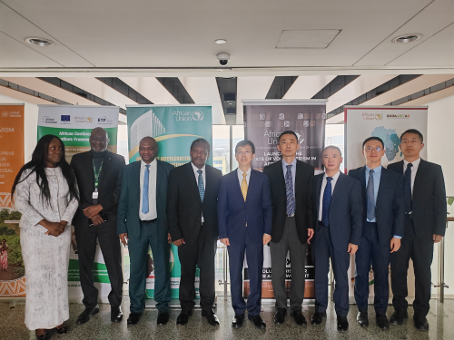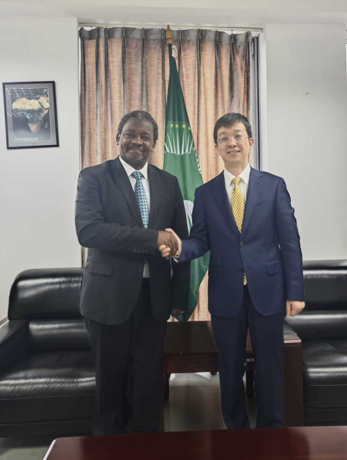 2025年10月13日,驻非盟使团团长蒋烽大使会见非盟委员会教育科技创新委员加斯帕尔·巴尼扬金博纳。