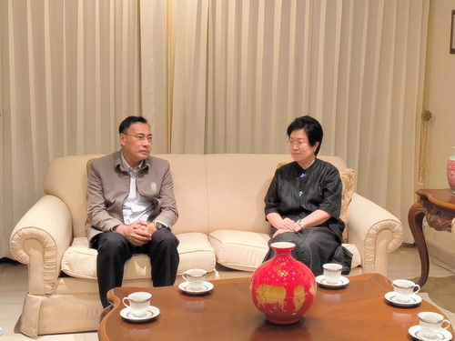 刘总领事回顾孔敬府与中国近年开展务实合作情况,宣介中国经济社会发展成就和党的二十届四中全会精神,表示总领馆愿与孔敬府携手合作,推动双方在经贸、教育、人文等领域交流合作,不断丰富“中泰一家亲”内涵。