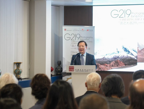 2025年11月7日,驻瑞士大使钱敏坚出席在伯尔尼中国文化中心举办的“国之大道219”——中国故事摄影展开幕式并致辞。展览摄影师邓予立和马纽埃尔·埃罗,以及瑞中之桥、瑞士华商会、瑞中协会等代表近百人参加活动。