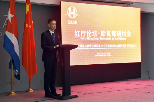 2025年11月12日,驻古巴大使华昕出席由新华社、中共中央党史和文献研究院与古巴信息和社会传播局联合举办的“红厅论坛·哈瓦那研讨会”并致辞。新华社社长傅华视频致辞,古信息和社会传播局局长诺亚和新华社拉美总分社社长姜岩发言。中古政商学界嘉宾及媒体、企业代表百余人出席活动。