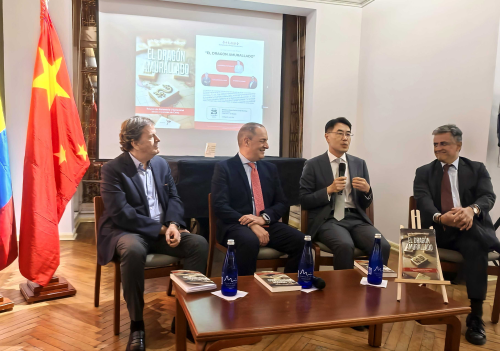2025年11月25日,驻哥伦比亚大使朱京阳出席前驻华大使蒙萨尔维新书发布会。哥前副总统拉米雷斯、前卫生部长鲁伊斯、哥中友协主席普亚纳等50多人出席活动。
