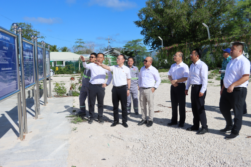 2025年12月2日,驻瑙鲁大使吕进赴中国援瑙鲁体育中心项目现场考察调研。中国港湾公司南太区域中心总经理马建华等参与。