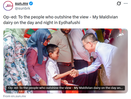 2025年12月8日,驻马尔代夫大使孔宪华在马尔代夫媒体中心、《太阳在线》等主流媒体发表题为《比景色更美的是人民——马代日记之艾达富士的昼与夜》署名文章,全文如下: