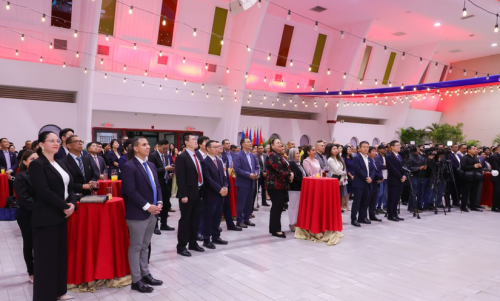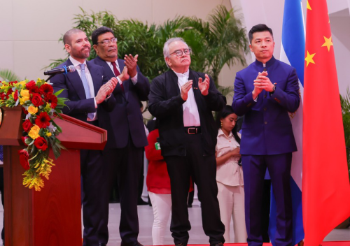 2025年12月10日,驻尼加拉瓜使馆举办中尼复交四周年暨驻尼加拉瓜大使瞿瑜辉到任招待会。瞿大使及尼议长波拉斯、联合外长詹特斯克、总统顾问劳雷亚诺致辞。尼党政军、驻尼使团、华侨华人、中企及孔院代表近400人出席。