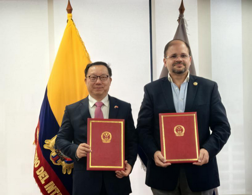 2026年1月22日,驻厄瓜多尔大使孙向阳拜会厄瓜多尔内政部长约翰·雷姆伯格,就加强两国执法安全合作交换意见。