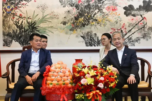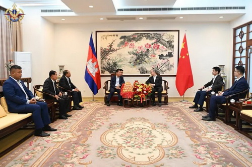 2026年1月30日,柬埔寨王家军总司令翁比塞上将携柬王家军副总司令兼空军司令邢桑楠上将、工程兵司令部司令关金上将、海军司令迪索卡中将等,赴驻柬埔寨使馆向中方祝贺马年新年,驻柬埔寨大使汪文斌热情迎接。