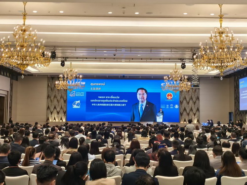 泰国投资促进委员会秘书长纳立在演讲中总结近年来中资企业在泰投资发展趋势,表示泰中在新能源、半导体、人工智能等产业合作空间广阔,将继续优化投资政策,做好企业落地服务,助力企业在泰可持续发展。泰商业部、工业园区管理局、在泰中资企业代表等800余人出席论坛。