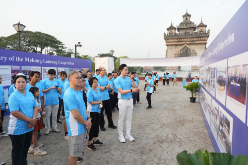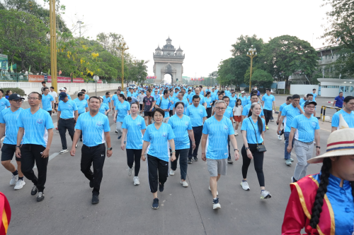 2026年3月21日,驻老挝大使方虹出席驻老挝使馆与老外交部在万象共同举办的健步走活动,庆祝澜湄合作首次领导人会议召开10周年暨2026年“澜湄周”。老挝外长通沙万、各部委代表及湄公河国家驻老使节等300余人参加。