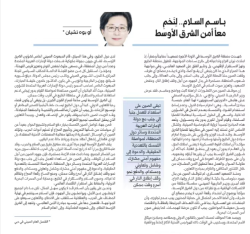 2026年3月31日,驻迪拜总领事欧渤芊在阿联酋《海湾报》发表署名文章《以和平之名共护中东安宁》,阐述中国政府在中东问题上的立场。全文如下: