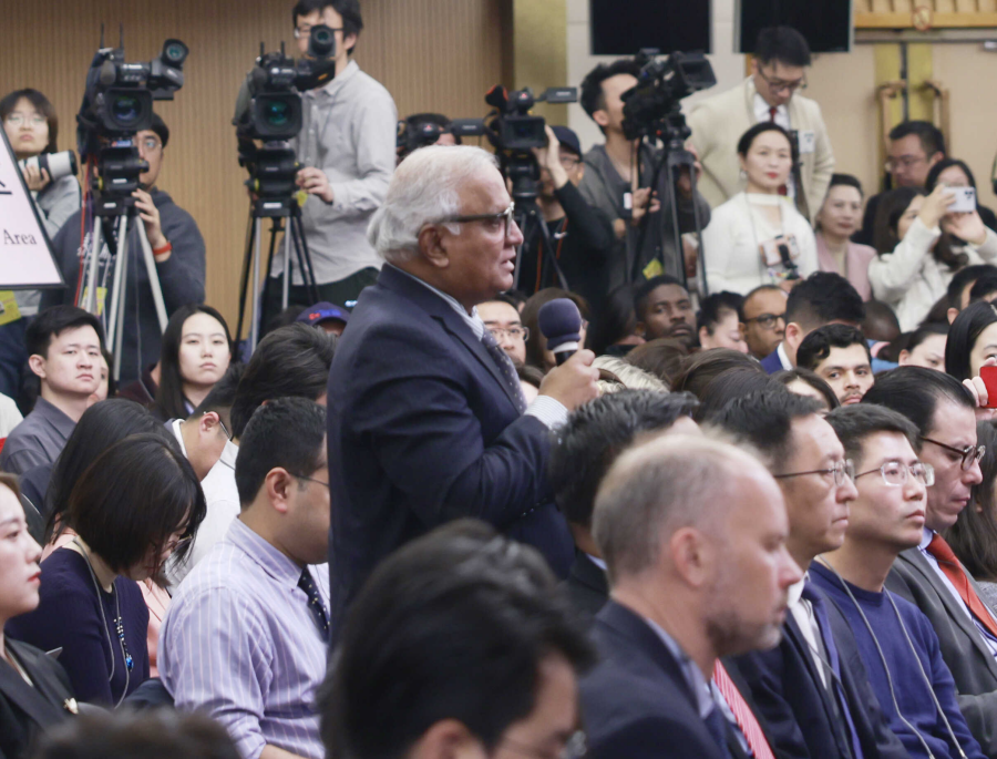 印度报业托拉斯记者在提问