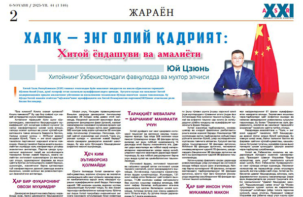 驻乌兹别克斯坦大使于骏在乌党报发表署名文章《以人民为中心——从实践看中国共产党的执政理念》