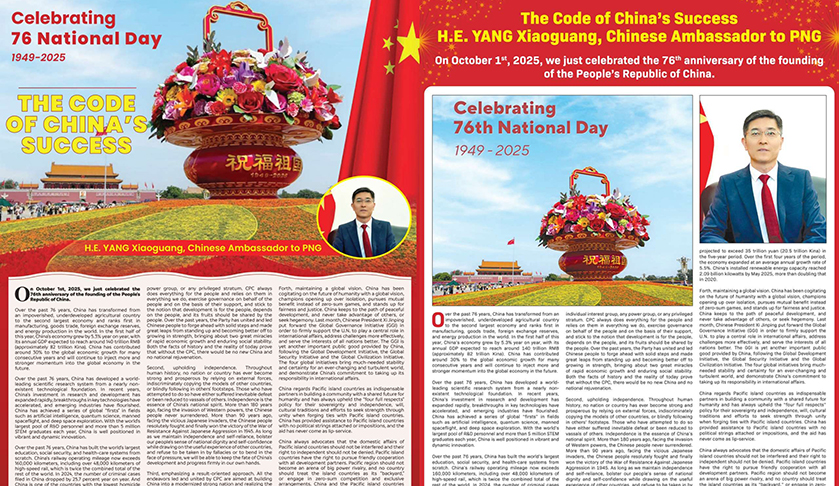 驻巴布亚新几内亚大使杨晓光在巴新媒体发表署名文章《中国成功的密码》