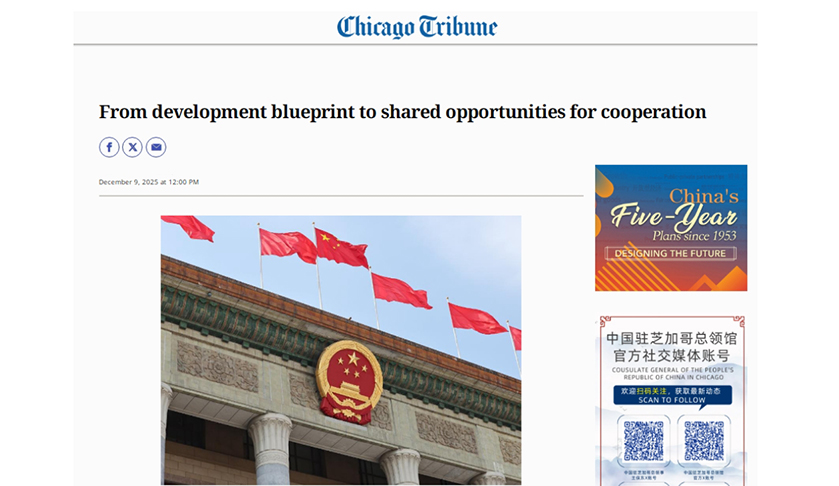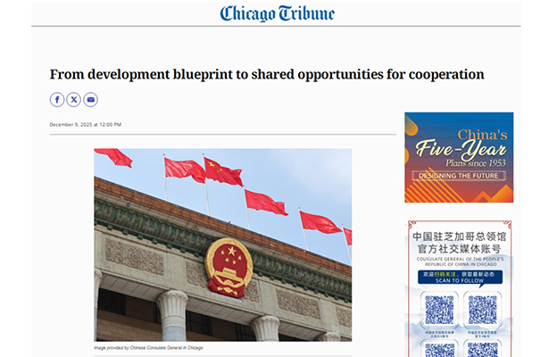 驻芝加哥总领事王保东在《芝加哥论坛报》发表文章《从发展蓝图到合作机遇》