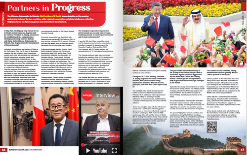 2025年9月24日,驻巴林大使倪汝池就中巴关系、全球治理倡议、地区和国际问题等接受巴主流媒体《巴林月刊》专访。专访全文如下: