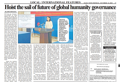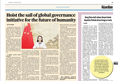 2025年10月13日、14日,驻坦桑尼亚大使陈明健在坦桑尼亚主流媒体《卫报》《每日新闻》发表署名文章《扬全球治理之帆 启人类未来之航》。全文如下: