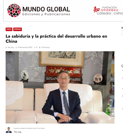 2025年11月4日,驻西班牙大使姚敬在西《全球世界报》发表题为《中国城市发展的智慧与实践》的署名文章,讲述我国城市发展取得的历史性成就。全文如下: