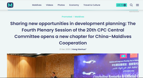 2025年12月21日,驻马尔代夫大使孔宪华在马尔代夫媒体中心、公共服务媒体(PSM)等主流媒体发表题为《共享发展规划新机遇 二十届四中全会开启中马合作新篇章》署名文章,系统宣介党的二十届四中全会精神。全文如下: