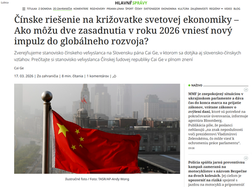 驻斯洛伐克大使蔡革在斯《主要新闻》发表署名文章《在世界经济的十字路口,倾听中国方案——2026年全国两会如何为世界发展注入新动能》