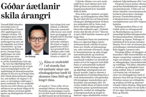 2026年3月28日,驻冰岛大使何儒龙在冰岛主流媒体《晨报》发表署名文章《谋无遗策 事以有成》,宣介“两会”精神和“十五五”规划。