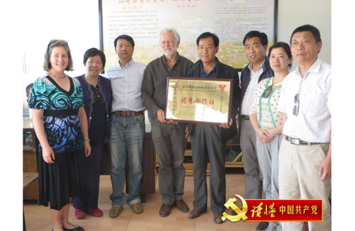 2012年, 荣大伟(左四)在甘肃省张掖市山丹县代表新中友好协会与工合国际向一家农村合作社颁奖