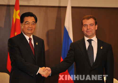 胡锦涛向梅德韦杰夫介绍了中俄双方落实两国领导人就加强各领域合作达成的共识的情况。胡锦涛表示,中方已提交《〈中俄睦邻友好合作条约〉实施纲要(2009年至2012年)》新的草案,将同俄方加紧研究,争取早日达成一致;双方已确定两国能源谈判代表,并将该机制纳入中俄总理定期会晤机制框架内;中方已确定中俄“语言年”中方组委会主席,希望俄方也确定俄方组委会主席,以便双方尽快启动2009年中国“俄语年”和2010年俄罗斯“汉语年”筹备工作。
