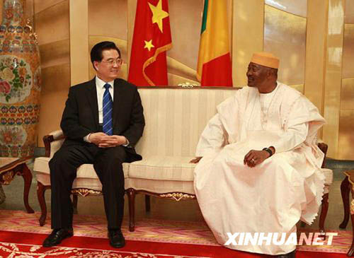 胡锦涛指出,2006年中非合作论坛北京峰会召开以来,在双方共同努力下,中非政治关系更加密切,务实合作深入发展。中国政府宣布的加强对非务实合作、支持非洲国家发展的8项政策措施落实工作取得积极进展。2008年中非贸易额首次突破1000亿美元。中方愿同包括马里在内的非洲国家一道努力,积极筹备论坛第四届部长级会议,扎实推进中非新型战略伙伴关系,造福中非人民。
