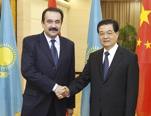 2010年6月12日,国家主席胡锦涛在阿斯塔纳会见哈萨克斯坦总理马西莫夫。