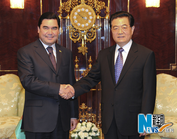 2010年6月11日,国家主席胡锦涛在塔什干会见土库曼斯坦总统别尔德穆哈梅多夫。