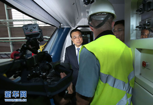 当地时间5月20日上午,国务院总理李克强在巴西里约热内卢参观体验中国产地铁列车。