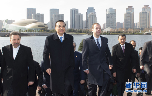 李克强与出席上海合作组织总理会议的各国领导人共同参观城市建设时强调 <br>挖掘中国中西部地区发展潜力和回旋余地 <br>拓展新型城镇化合作更广阔的空间