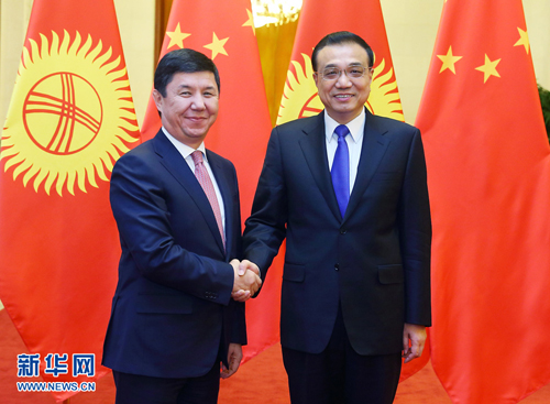 李克强表示,中吉是山水相连的友好邻邦,两国人民交往源远流长。中方始终从战略高度看待中吉关系发展,坚定支持吉尔吉斯共和国的独立、主权和领土完整,尊重吉人民自主选择的发展道路,愿同吉方进一步巩固政治互信,全面深化务实合作,推动两国关系取得新的发展。